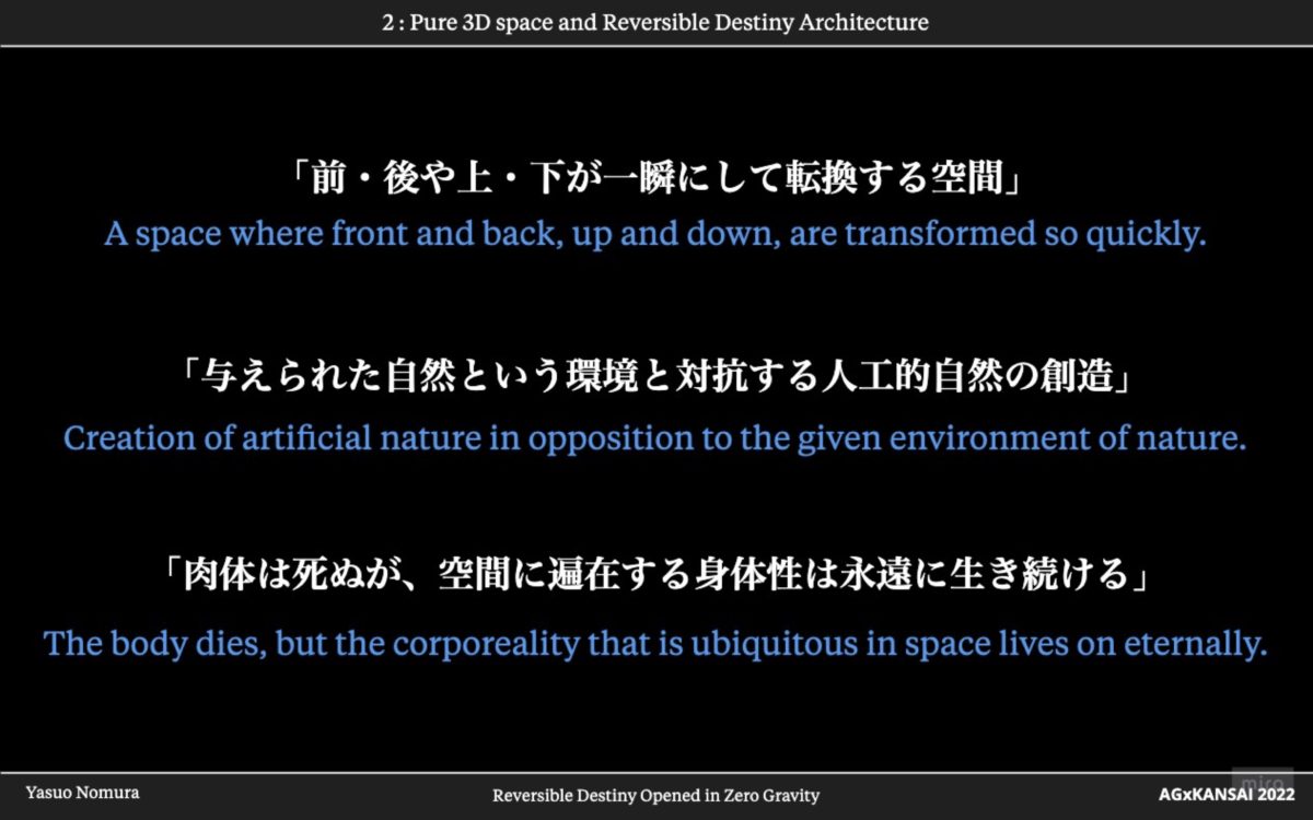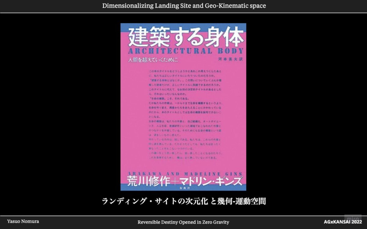 今回の講演では、私が2019年より進めているNYのRDFでのリサーチや関係者へのインタビュー、日本でのフィールドワークを元に、これからの宇宙時代に無重力空間を舞台にして展開する新たな天命反転建築の可能性についてモデル展示と共に提示する。