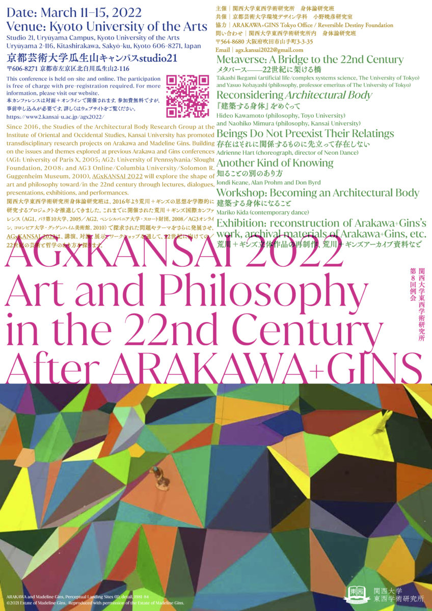 私はこれまで絵画をベースに次元や空間概念の問題と身体感覚の拡張を探求してきた。その中で宇宙時代を生きる次世代の人類が重力から解放された空間で新たな身体性を獲得する可能性に、荒川+ギンズが目指した「天命反転」のビジョンと重なりあるものを多く見出すことが可能だと考えている。彼らがまだ死んでいないとすれば宇宙で一体どういう天命反転建築を構想したであろうかに想いを馳せて論じてみたい。